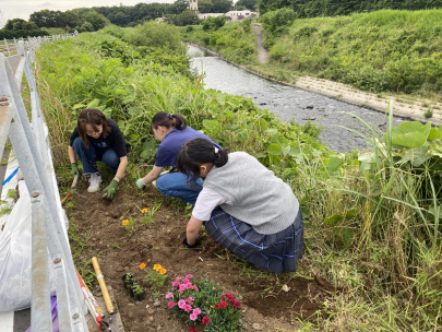 川岸のごみ拾いや花壇の手入れを行っています。