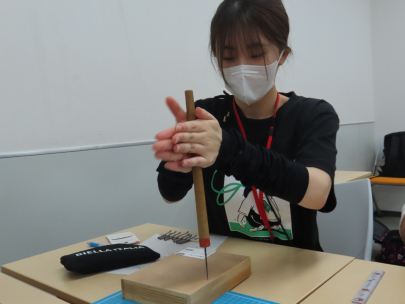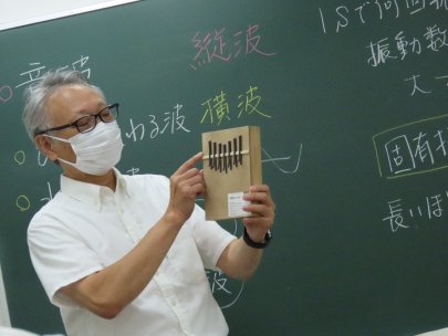 音は波動の大きさ(振動数など)によって低く聞こえたり、高く聞こえたりするということを学び、身近な品物(100均で買えるもの)を使ってジンバブエの民族楽器でもあるカリンバを作りました。