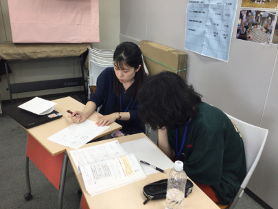 持参した中学校の教科書学習中の様子