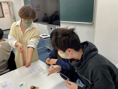 苦戦しながらも楽しく水引を作っている姿が見られました。