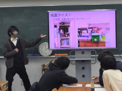 その中で「地震・防災」について探究しているチームが、他の生徒への授業を実施しました。
