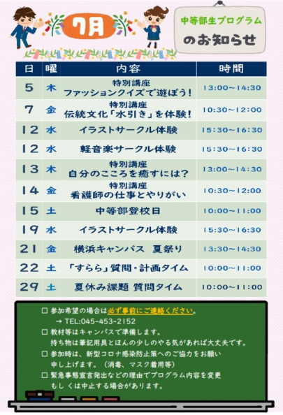 【お知らせ】7月中等部体験のお知らせ