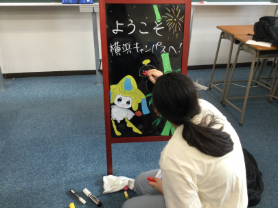 横浜キャンパスに来た際は、ウェルカムボードのイラストにも注目してください♪