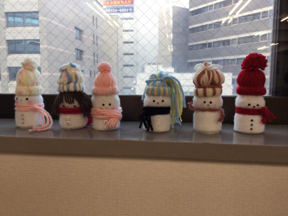 先日手芸レクリエーションを行い、個性あふれる「雪だるま」を作りました!