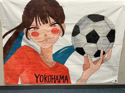 この応援旗で横浜キャンパスのフットサルチームを全力で応援したいと思います!